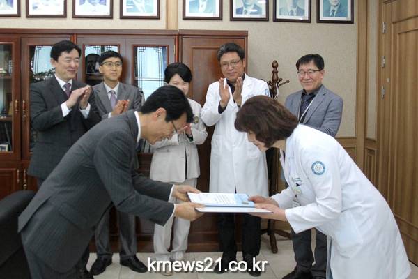 예수병원 간호부 마취과 양혜경 직원의 자녀 김도환(건국대학교)군이 IBK기업은행 IBK행복나눔재단의 학업장학금 지원사업에 선정되어 2월 16일(목)에 장학금 300만원과 장학증서를 수여받았다. IBK기업은행 김형관 서전주지점장은 “지역에 많은 공헌을 하는 우수기업인 예수병원에 장학금을 지급할 수 있어서 기쁘다.”고 전했다. 예수병원 권창영 병원장은 “지역 우수 청소년들이 꿈을 이루는데 보탬을 주신 것에 대하여 감사를 드리며, 예수병원도 ‘IBK기업은행 행복나눔’ 캠페인에 적극 동참하겠다.”며 화답하였다.