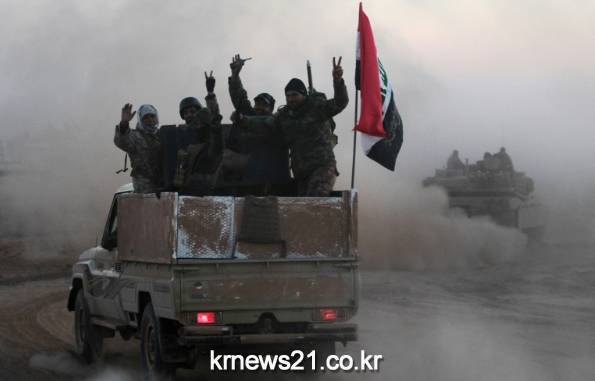 이라크 군이 모술의 남쪽, 셰이크 유니스의 마을을 향해 이동 하고 있다
