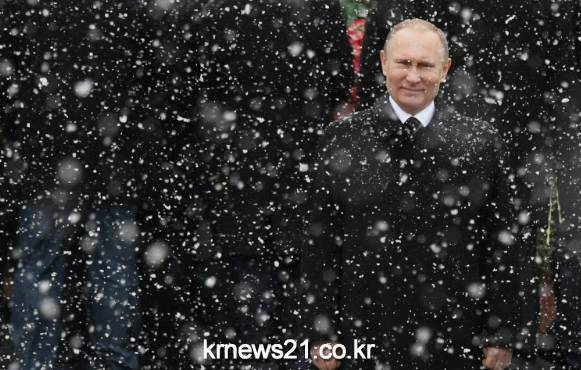 푸틴 러시아 대통령은 모스크바에서 조국 수호자의 날에 행사에 참여했다
