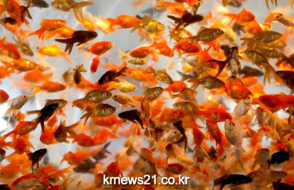 테헤란에 있는 수족관 안에 금붕어 모습이다