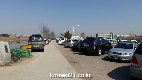 부천시 오정구 대장동 487 부천시 버스운송사업소 버스차고지 옆 하천부지 자전거도로에 불법주차 차량으로 인해 이곳을 이용하는 자전거 이용자에게 안전을 위협하고 있어 강력한 단속이 요구된다.
