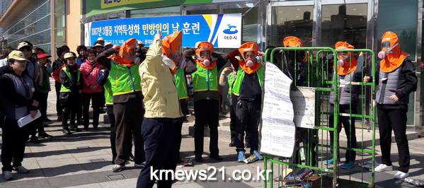 지난 15일에는 다중집합이용시설인 롯데마트 여수점에서 시 안전총괄과, 봉산119 안전센터, 통장협의회, 주민자치위원회, 롯데마트 관계자 등 70여명이 참석한 가운데 비상상황에 대비한 점검식 훈련을 실시했다.