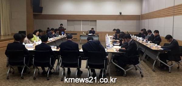 ▲지난 17일 여수시청 회의실에서 5월 25일부터 3일간 여수엑스포컨벤션센터 일원에서 개최되는 제13회 대한민국청소년박람회의 성공적 개최를 위해 TF팀이 회의를 진행 중에 있다