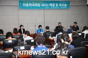 <</span>사진설명> 지난해 마포구는 마포경찰서와 서부교육지원청과 지역아동을 보호하기위해 아동학대예방 MOU를 체결했다(좌), 이날 안전한 아동보호를 위해 각계각층의 전문가 등을 초빙해 사회적 역할과 개선을 공유하는 워크숍도 함께 열렸다. | |