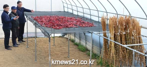 이번에 도 농업기술원에서 개발한 '하우스형 접이식 농작물 건조대'는 하우스 측창에 붙여 설치하는 방식으로 조립 방법이 간단하고, 참깨를 비롯한 고추, 마늘 등 다양한 농작물을 건조 시킬 수 있다.