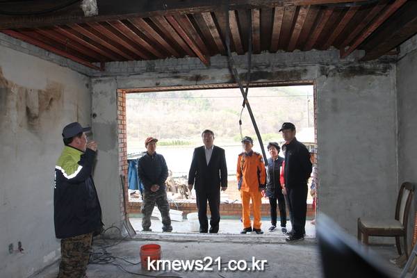 ▲  화재피해주민 복구 지원이날 함께한 완주군의용소방대연합회 조한용 회장은 “신속한 출동과 화재진압으로 더 큰 피해를 예방할 수 있었다며 이렇게 화재피해 복구를 위해 위로금까지 지원해주니 더욱 감사하다”며 고마움을 전했다.