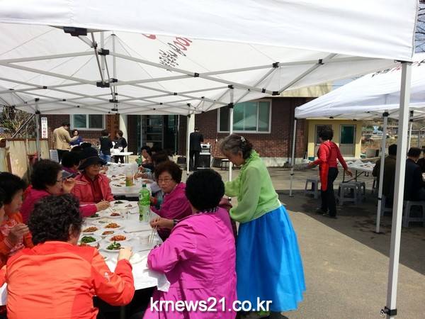 신송1리 마을에서 50여명의 노인들을 초청해 사랑을 실은 참! 맛있는 행복밥차를 운영했다. 이날 행사는 신송1리 부녀회원의