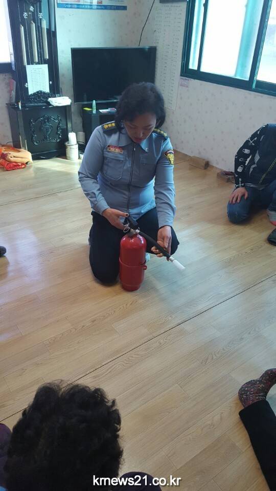 ▲ 사랑의 식사운주의용소방대원은 이른 아침부터 장선리 마을회관에 방문해 내· 외부 청소를 하고 봄나물 등 다양한 반찬을 준비해 함께 식사를 하며 따뜻한 정을 나누고, 소화기 사용법과 119신고방법 등 초기 대응방법에 대해 교육하고 1가정1소화기 갖기 운동에 적극 동참해 달라며 당부했다.
