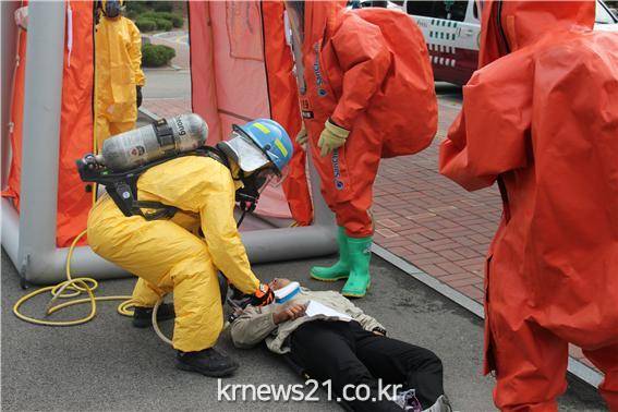 경기장 내부에 설치된 옥외소화전과 피난유도등, 소화기 등 각종 소방시설을 점검하고, 소방CP(지휘소)를 운영하여 초기화재발생시 대피요령 및 진압요령 등을 협의하며 실제 상황을 가상하여 훈련하였다.