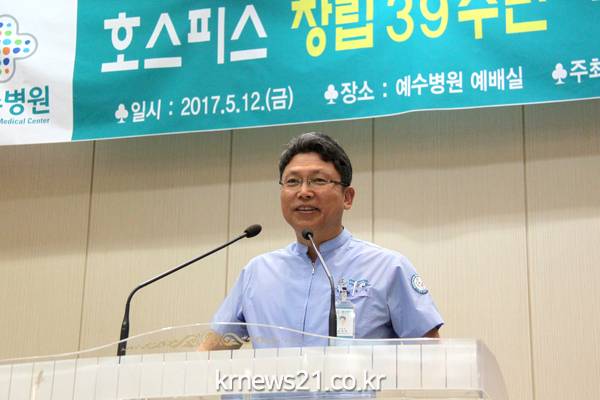 이어서 예수병원 권창영 병원장은 축사를 통해 “39년 동안 이름도 없이 빛도 없이 변함없는 헌신으로 봉사하시는 예수병원 호스피스 봉사자 모두에게 진심으로 감사를 드린다. 생이 마지막 순간에 있는 분들을 따뜻한 마음으로 소중하게 보살피며 함께 아픔과 고통을 나누는 하는 것이야 말로 가장 숭고한 봉사”라고 강조하고 봉사자들의 노고를 치하했다.