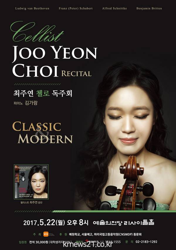 22일 첼리스트 최주연 독주회는 예술의전당 IBK챔버홀에서 생생한 울림으로 개최된다.