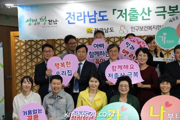 전라남도는 18일 도청 서재필실에서 저출산 극복 분위기 확산을 위해 사회 각계각층과 협력을 강화하기 위한 ‘전남 저출산 극복 사회연대회의’ 출범식을 가졌다.
