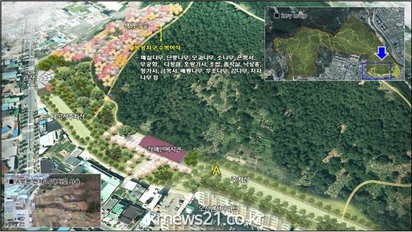 ‘서산 근린공원 조성사업’은 덕례리 오성아파트 뒤편 옛 공동묘지 16,577㎡에 장애인직업체험관과 주차장 165면을 설치하는 사업으로 사업비 41억 원을 투자해 올해 말까지 조성을 목표로 진행하고 있다.