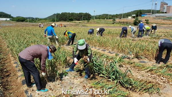 이들은 이날 고령으로 몸이 불편한 영암 미암면 미암리 A농가(73) 900여 평에 마늘수확 작업을 도왔다.