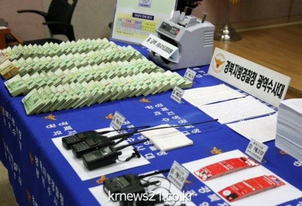 ▲  △ 경찰에 압수된 도박장 증거품