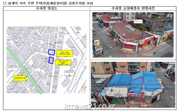 서울 노원구(구청장 김성환)는 전통시장과 역세권 주차난 해소를 위해 상계역 인근에 공영 주차장을 조성한다.