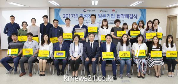 한편, 이날 협약을 체결한 여성친화 일촌기업은 (유)삼신기업, (유)길승산업, 노인사랑복지센터, 농업회사법인(주)빛뜨락, 농업회사법인천지연(유), 더숲요양병원, 드림사회서비스센터, 주식회사리드, 사랑나눔복지센터, 사랑방재가노인센터, 그린실업, (주)삼우냉동, 선덕효심원, (주)씽크포비엘, 예송요양병원, 전북대학교 산학협력단, 전주노인건강복지센터, 행복한요양병원, 형제식품, SJ산업 등 20곳이다.