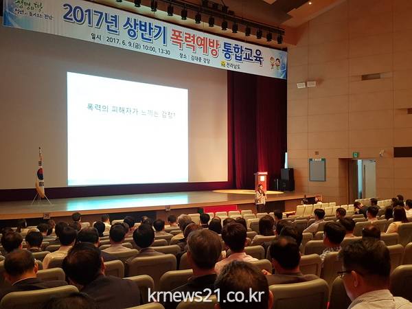전라남도는 9일 오전과 오후 두 차례에 걸쳐 도청 김대중강당에서 직장 내 건전한 분위기 조성과 성희롱․성폭력으로부터 안전한 직장문화 확산을 위해 전 직원 대상 예방교육을 실시했다.