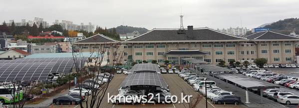 지난 2014년 청사 부설주차장에 88kw 태양광 발전시설을 설치한 시는 지난해 8월과 11월 한국남동발전과 휴켐스의 사회공헌사업을 통해 150kw의 발전시설을 추가로 확보했다. 한국남동발전과 휴켐스가 3억8900만원을 지원했고 시는 7000만원을 부담했다.