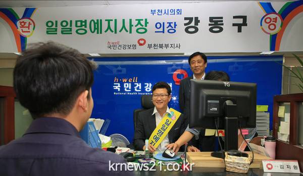 강동구 부천시의회 의장은 지난 21일(수) 국민건강보험공단 부천북부지사 1일 명예지사장으로 위촉되어 국민건강보험 업무를 체험하는 시간을 가졌다.