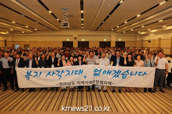 전라남도는 22일 보성 다비치콘도에서 읍면동 이통장, 자원봉사자 등이 중심이 된 지역사회보장협의체 위원과 공무원 등 300여 명이 참석한 가운데 지역사회보장협의체 전남지역대회를 개최했다.