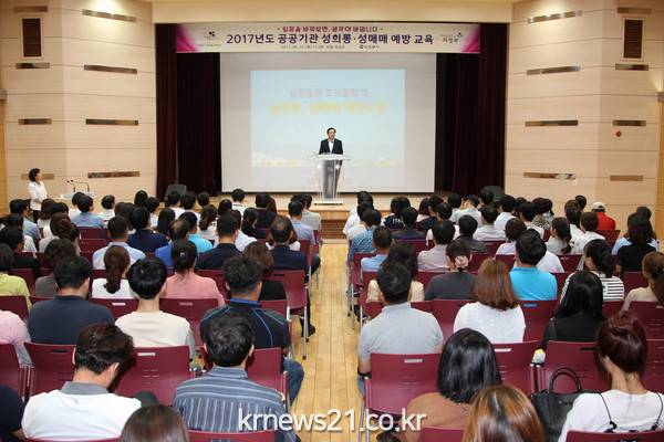 의정부시(시장 안병용)는 지난 6월 22일 시청 대강당에서 전 직원 및 유관기관인 시설관리공단, 예술의전당, 청소년육성재단 임․직원 등 200명을 대상으로 2017년도 제2차 공공기관 성희롱·성매매 예방교육을 실시했다.