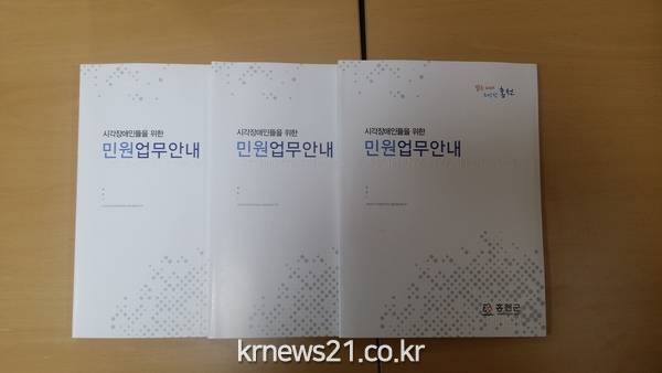 홍천군이 시각장애인에게 민원제도와 사회복지서비스를 안내할 목적으로 『민원업무안내』점자 책자 300부를 제작 배포한다고 밝혔다.
