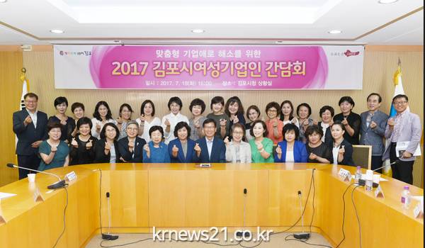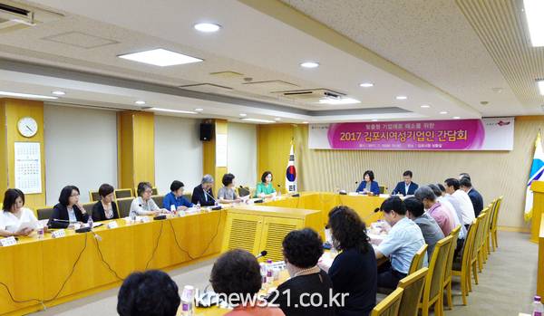 유영록 김포시장과 김포여성경제인협회(회장 이미연) 회원들간의 간담회가 지난 18일 오후 시청 상황실에서 열렸다.