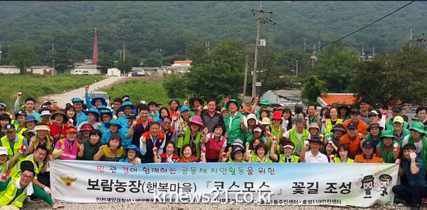 인천계양경찰서(서장 정진관) 효성지구대는 지난 21일(금) 안전한 마을을 만들기 위해 계양구 효성동 재개발 구역 신작로에 코스모스를 식재하는 행사를 가졌다."고 밝혔다.