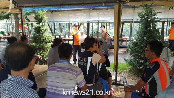 ▲ 생활안전교육김봉길 방호구조과장은 “본격적인 피서철을 맞아 추가적으로 관내 많은 사람이 모이는 운주 대둔산 일대 계곡, 동상계곡, 고산천 등을 중심으로 119수변안전요원과 119수호천사(의용소방대)를 활용해 생활안전교육과 심폐소생술을 보급하여 단 한건의 안전사고가 발생되지 않도록 최선을 다 하겠다”며 끝을 맺었다.