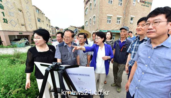 곧 철거될 십정1동 아파트 건설 부지 일대를 둘러 본 홍미영 구청장은 주민과 배석한 공무원에게 “아직 장마가 끝나지 않은 만큼 뉴스테이 예정지의 이주가 완전히 마무리될 때까지 홍수 피해가 없도록 안전에 만전을 기해줄 것”을 당부했다.