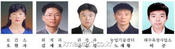 보령시는 시정발전과 시민 복리 증진을 위해 온 힘을 기울인 보건소 오현자 팀장(보건6급)을 친절공무원, 회계과 김재호(시설7급), 관광과 김훈정(행정7급), 농업기술센터 노재황(농촌지도사), 해수욕장사업소 허준(행정8급) 주무관을 7월중 열심히 일한 공무원으로 선정하고, 8월 중 직원모임에서 표창했다.