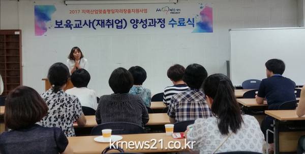 부평구(구청장 홍미영)는 지난달 31일 오후 인천시여성가족재단 2층 음악실에서 2017년 지역·산업맞춤형 일자리창출 지원사업인 ‘보육교사(재취업) 양성사업’ 수료식을 가졌다.