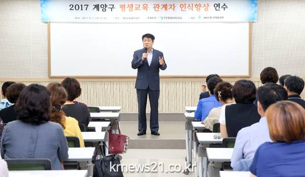 인천 계양구(구청장 박형우)는 인천평생교육진흥원(원장 김연임)과 공동으로 지난 2일 계양구 평생학습관에서 계양구 평생학습관련 기관 및 단체의 기관장 및 관계자 100여 명을 대상으로 ‘계양구 평생학습기관 인식향상 연수’를 개최했다.