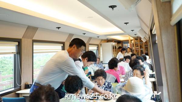 ▲ 원수계마을-비비정 기차이날 참석한 어르신들은 “내 평생 기차 레스토랑에서 맛있는 돈가스를 먹게 될 줄 몰랐다”며 “이런 자리를 마련해준 이장님과 주민들에게 거듭 감사하다”는 말을 전했다.