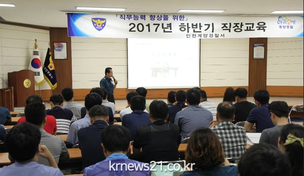 인천계양경찰서(서장 정진관)에서는 지난 10일부터 2일에 걸쳐 경찰서 4층 대강당에서 전 직원이 참석한 가운데 경찰 역량 향상과 공직자의 바른 가치관 함양을 위한 직장교육을 실시했다."고 밝혔다.