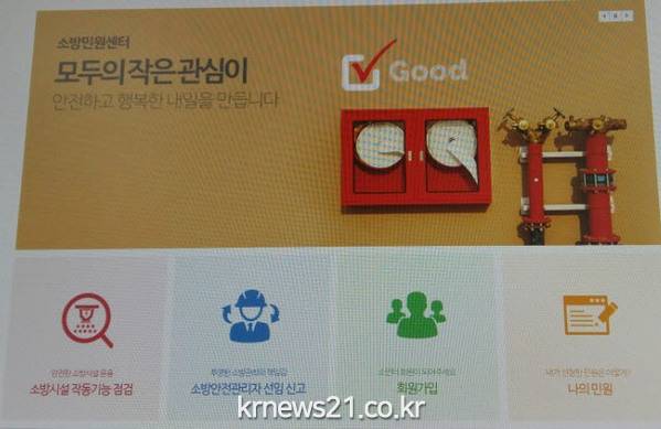 ▲ 소방민원 관련업무 소민터 관련 사진서비스 이용방법을 간단히 설명하자면 첫째 회원가입 후 개인 공인인증서를 등록한다. 둘째 홈페이지에 있는 작동기능 점검 제출 및 소방안전관리자 선임 등 자신이 필요한 민원 신청란을 클릭한다. 셋째 예시에 맞게 공란을 작성하고 및 첨부파일에 필요서류를 첨부, 제출란을 클릭하면 민원접수가 완료된다. 보다 자세한 사항은 전주덕진소방서 방호구조과(063-250-4236)로 문의할 수 있다. 소방서 관계자는 “소방민원센터를 통해 민원인들에게 질 좋은 서비를 실시간으로 전달 할 수 있게 돼 기쁘다”며 “많은 사람들이 이 서비를 통해 손쉽게 소방민원을 처리하길 바란다”고 말했다.