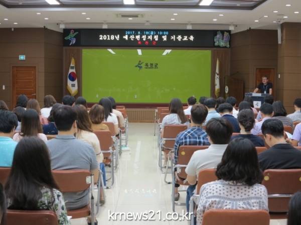 충북 옥천군은 18일 군청 대회의실에서 2018년도 당초예산 편성계획 지침시달 교육을 실시하는 등 내년도 예산편성을 위한 행보에 들어갔다.