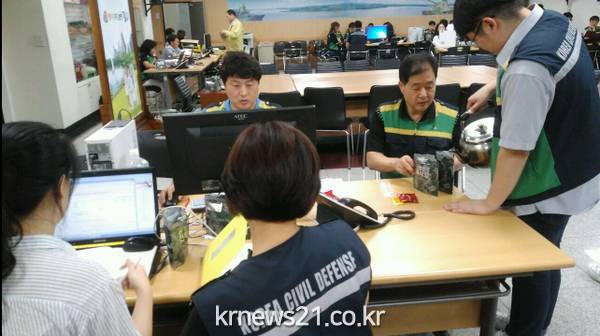 김포시(시장 유영록)가 2017 을지연습 둘째 날인 22일 저녁 식사를 전투식량 시식 체험으로 진행했다.