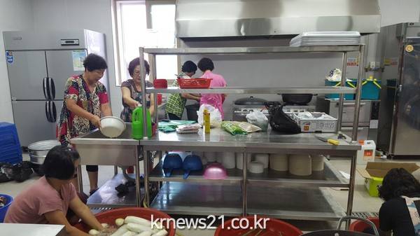 이 날 행사는 10명의 봉사자들이 기산면복지회관에서 반찬을 준비하고