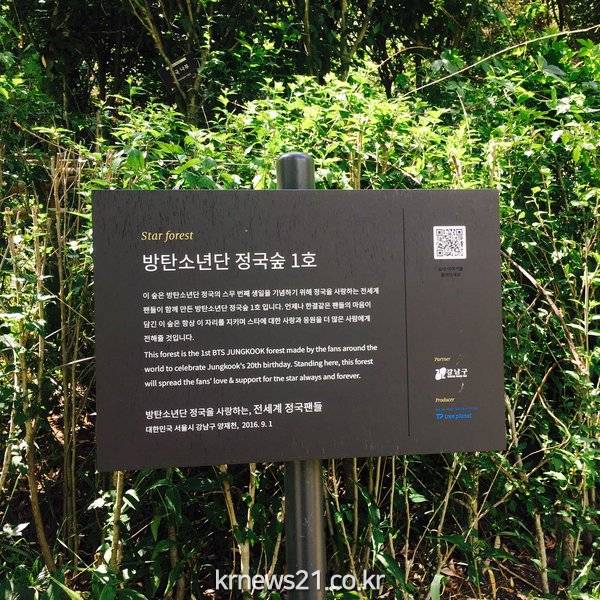 숲 조성에 참여한 한 팬은 “정국의 스무 번째 생일에 이어 스물한 번째 생일에도 숲을 선물할 수 있어 기쁘다”며 “정국숲이 정국과 팬들의 소중한 공간이자 서울의 명소로서 많은 사람들에게 사랑 받기를 바란다”고 밝혔다.