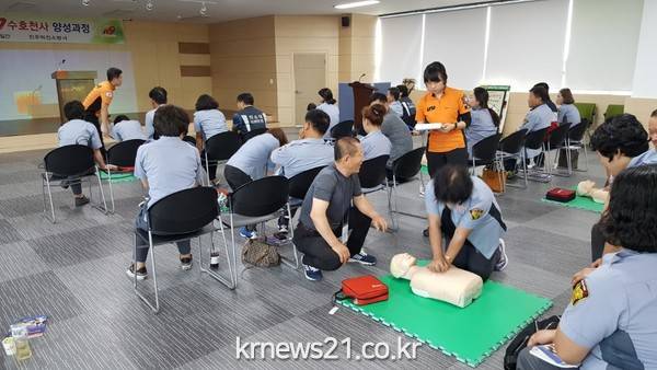 전주덕진소방서는 9월 4,5일 2일간 덕진소방서 3층 대강당에서 의용소방대원 100명을 대상으로 생명지킴이 119수호천사 양성교육을 실시하였다. 심폐소생술을 전 국민에게 알리고 도민의 안전욕구에 부응하기 위해 마련된 이번 교육은 신규 강사 육성을 위한 자리로 의용소방대원 개개인의 전문능력을 향상시켜 소방관서 원거리 지역과 안전사각지대 공백을 채워 안전한 전라북도 만들기에 앞장서고자 추진했다.
