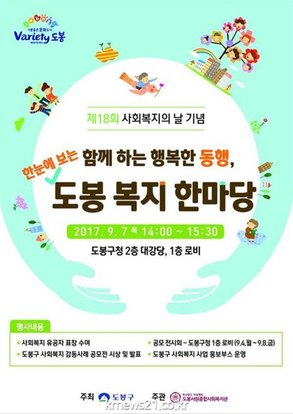 도봉구(구청장 이동진)는 7일 구청 대강당에서 제18회 사회복지의 날 기념 ‘함께하는 행복한 동행, 한눈에 보는 도봉 복지 한마당’을 개최한다.