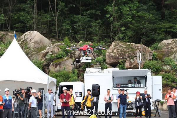 앞서 보은군은 2016년 12월 말 국토교통부의 드론 시범 지자체로 선정된 후 지난 7월10일 보은군 산외면 신정리 276-2 일원에 직경 6㎞, 면적 28.3㎢ 규모로 관제센터, 자동기상관측장치를 갖춘 보은 공역장을 개장했다.