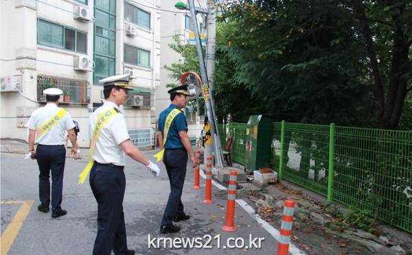 정진관 경찰서장은 어린이 교통사고 예방을 위해 교사 · 학부모와 함께 학교 주변을 점검하여 스쿨존 내 교통사고 · 학교폭력 등 위험요소를 파악 후 개선하도록 하였다.