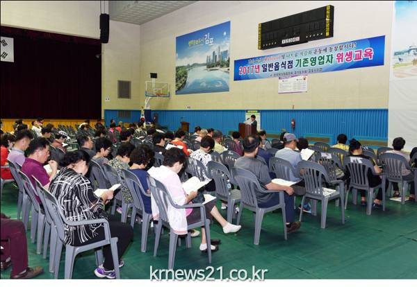 김포시는 지난 7, 8일 양일간 김포시민회관 실내체육관에서 2017년 1월1일 이전 영업 신고한 일반음식점 영업주 약 1,000여명을 대상으로 식품위생교육을 실시했다."고 밝혔다.