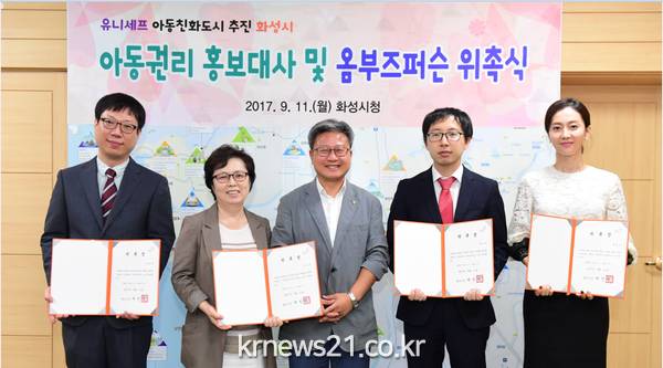 유니세프 아동친화도시를 추진 중인 화성시가 11일 시청 접견실에서 아동권리 홍보대사와 아동의 권리를 보호하고 증진하는 역할하게 될 ‘옴부즈퍼슨’ 위촉식을 개최했다..