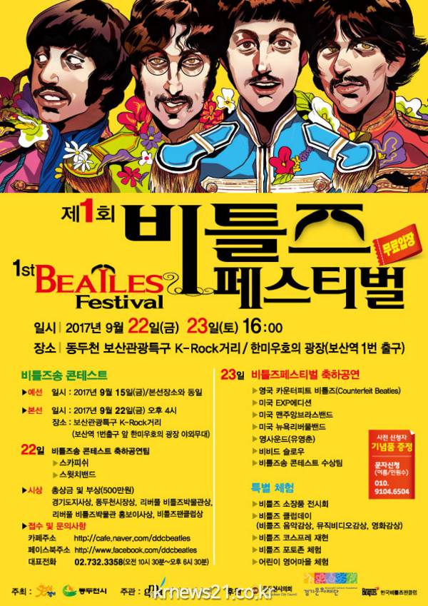 팝 역사에서 가장 위대한 업적을 남긴 비틀즈를 주제로 한 “2017 동두천 비틀즈페스티벌”이 동두천 보산동관광특구 일대에서 이달 22~23일 양일간 개최된다.