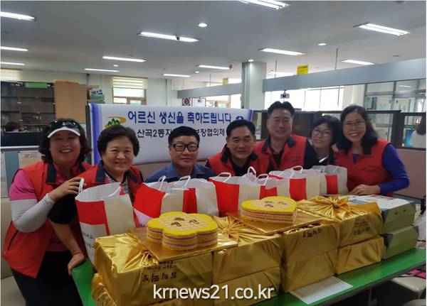 부평구(구청장 홍미영) 산곡2동 지역사회보장협의체는 13일 ‘인천보듬지킴이 사업’의 일환으로 9월에 생신을 맞으신 홀몸어르신 10명에게 생신떡케이크와 생신선물을 전달했다.
