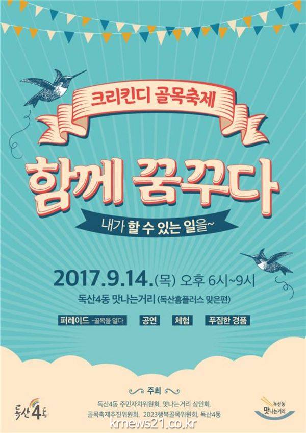 금천구 독산4동 ‘맛나는거리’에서 14일 오후 6시부터 주민들이 직접 기획하고 추진하는 ‘크리킨디 골목축제’를 개최한다.